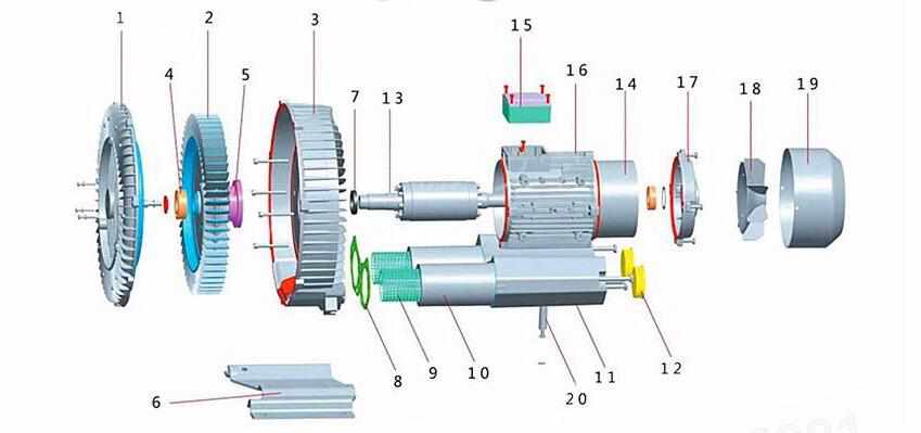 高壓鼓風機解剖圖,高壓鼓風機內部圖,高壓鼓風機爆炸圖,電機采用國標電機,寬頻雙電壓,50HZ和60HZ,電機保護等級為IP55,絕緣等級為F級,此電機可在全球范圍內,不同的地區(qū),不同的電壓均可通用。【點擊詳情】