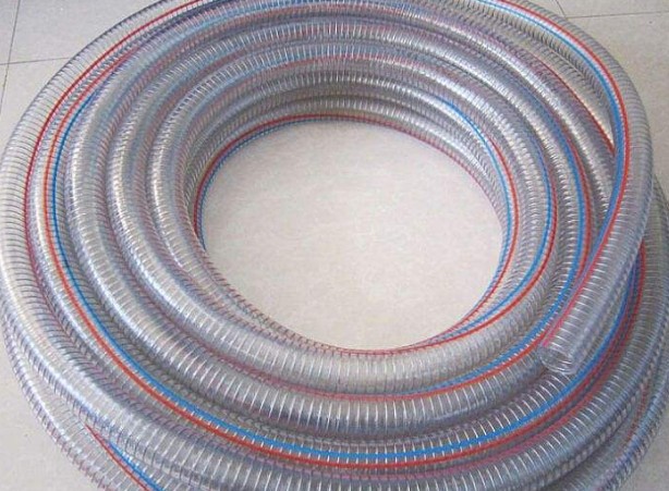 鋼絲軟管:即內(nèi)置有鋼絲的軟明軟管,其管材為三層結(jié)構(gòu),內(nèi)外兩層是PVC軟質(zhì)塑料,中間一層是鋼絲增強(qiáng)結(jié)構(gòu),或者是鋼絲網(wǎng)或者是螺旋鋼絲。